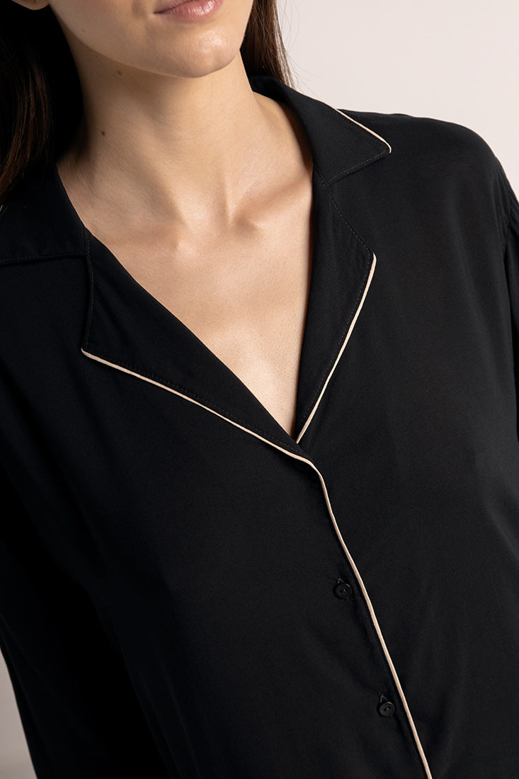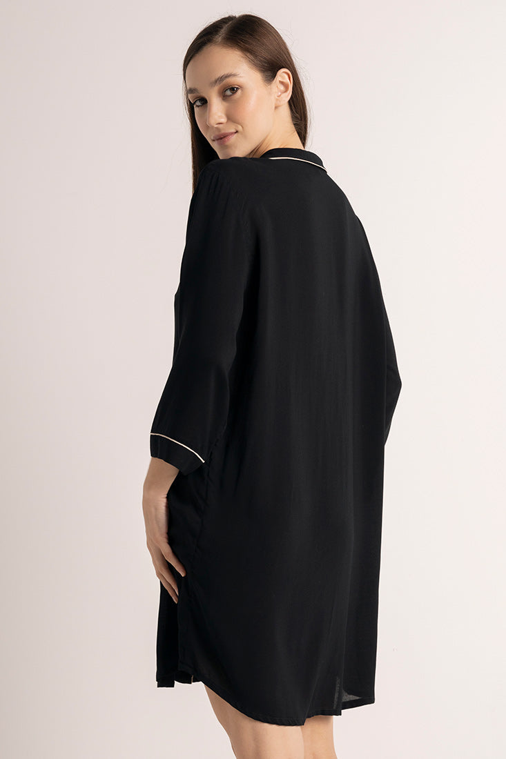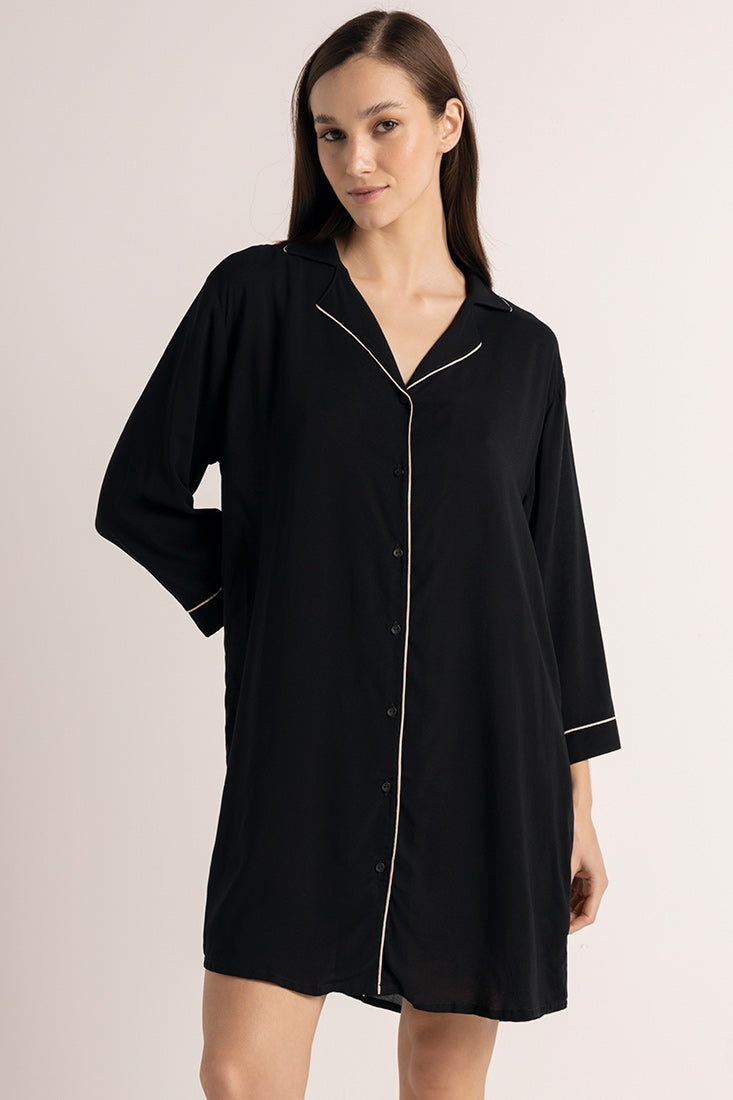 Camisón manga 3/4 con botones, vivo en escote y puños. Color negro, Ref. 1590032