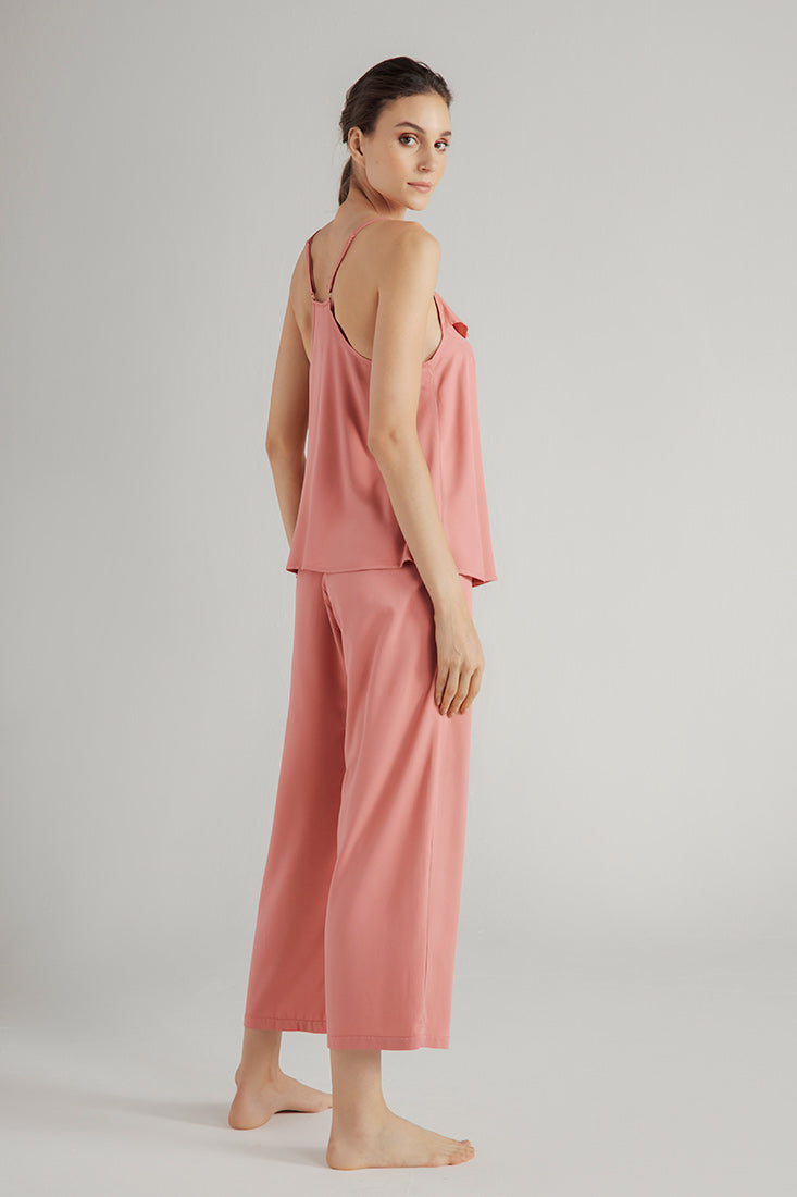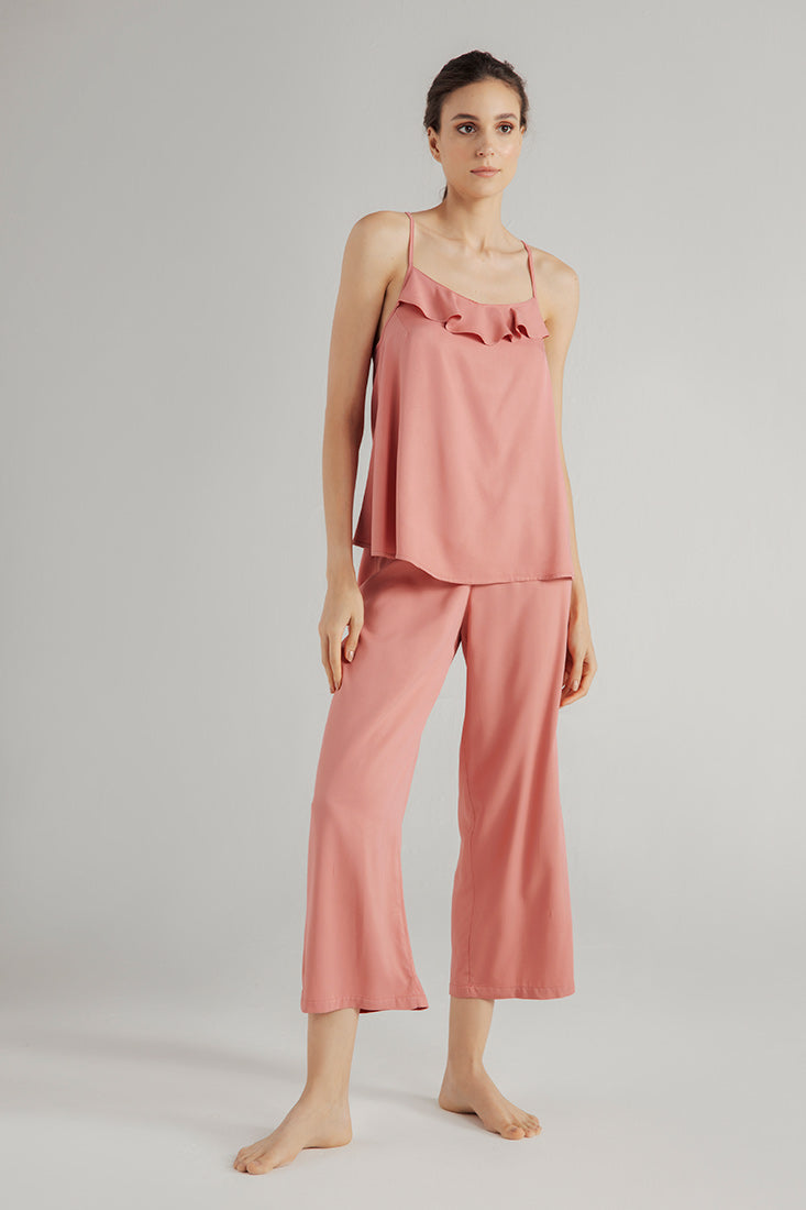 Pantalón capri elaborado en viscosa fondo entero. Color Salmón, Ref. 1347041
