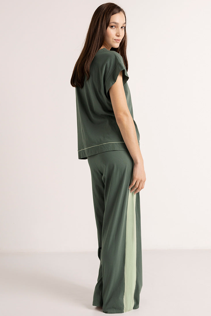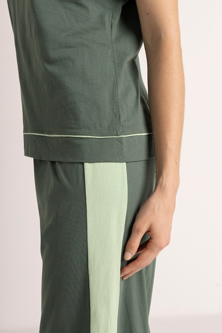 Pijama pantalón, elaborada en tejido de punto. Camisa sin mangas, cuello redondo. Pantalón largo bota recta con corte en contraste.. Color verde, Ref. 1535042