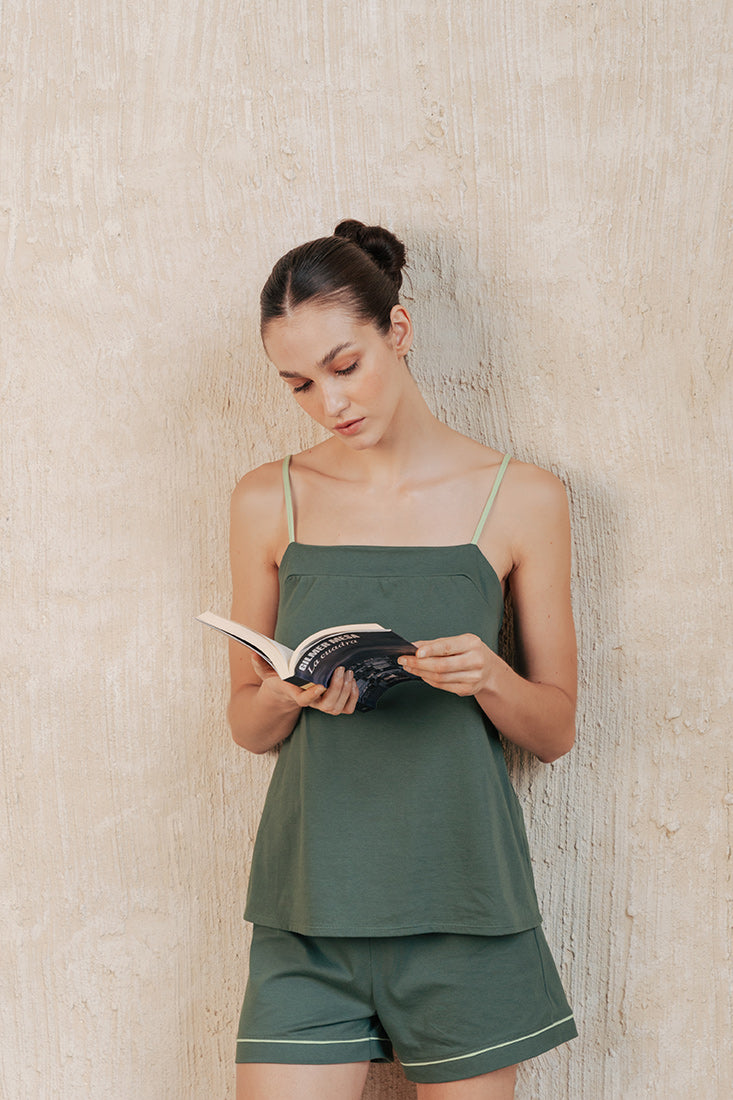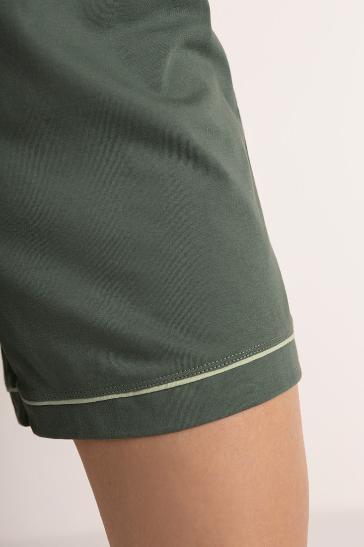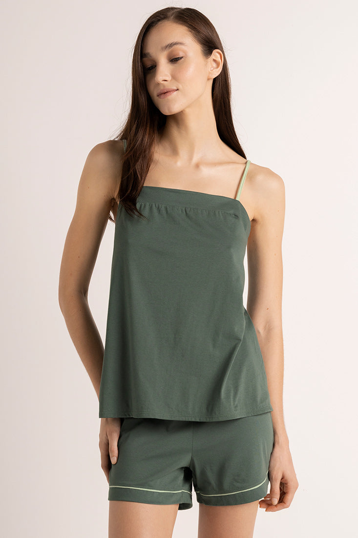 Pijama short, elaborada en tejido de punto. Camiseta de tiras con cargaderas en contraste. Short silueta clásica y pretina en contraste.. Color verde, Ref. 1534042
