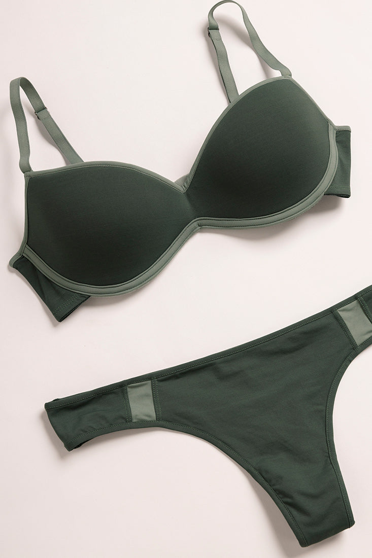 Brasier monocopa con bloques de color y cargaderas ajustables, elaborado en microfibra. Color verde, Ref. 1432042
